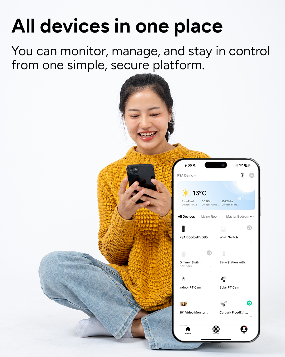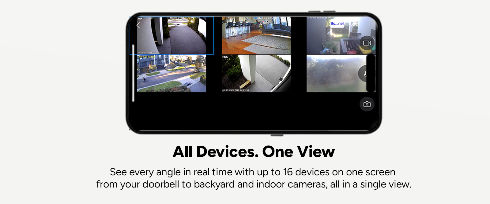 Whether you're at home or away, the PSA Centrii App gives you instant access to live video feeds—so you can check in on your loved ones, pets, and home anytime, right from your phone.